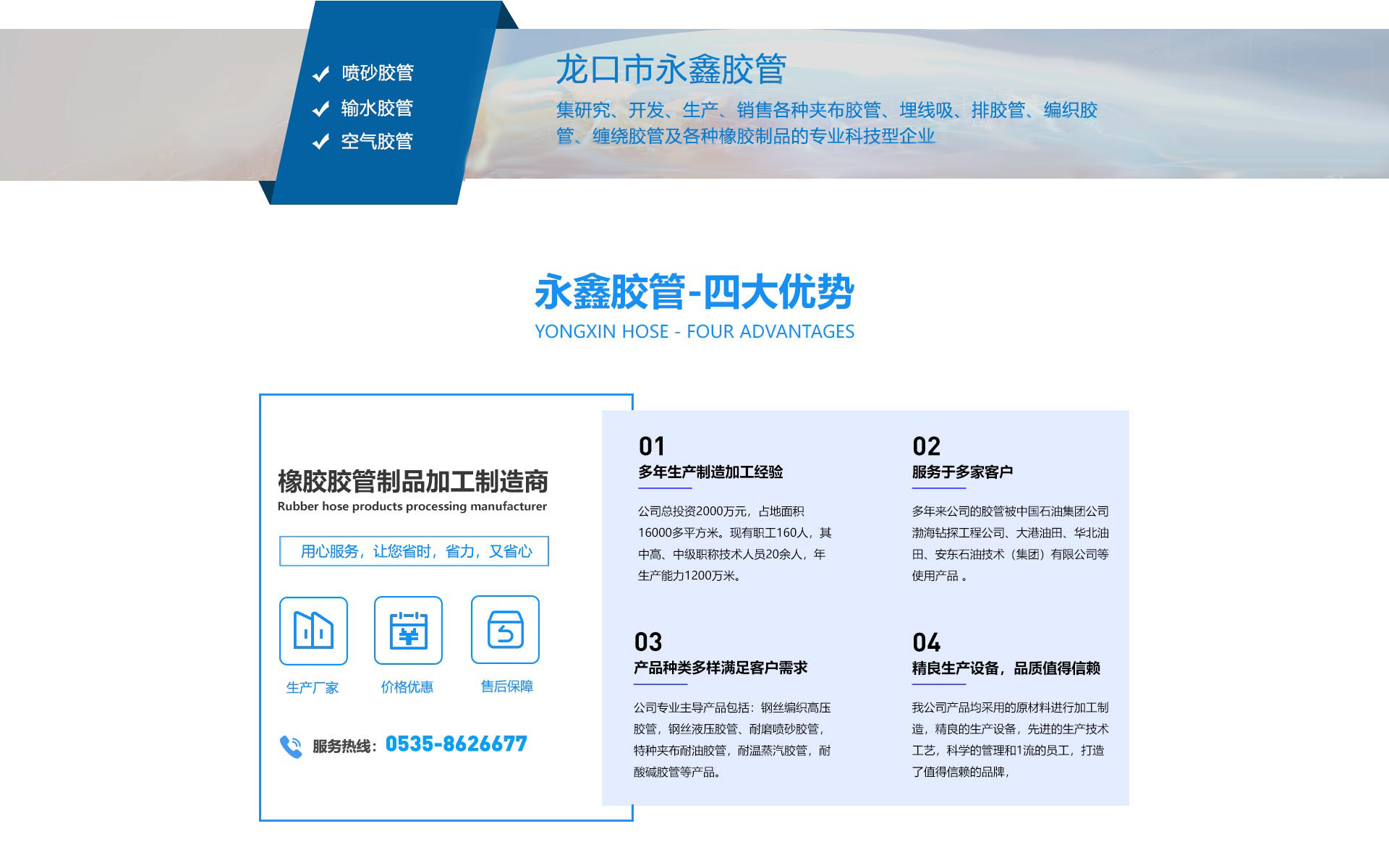 龍口市永鑫膠管有限公司始建于1979年。位于山東半島北端——龍口市,毗鄰龍口港、威烏高速公路和大萊龍鐵路,商業(yè)運(yùn)輸,交通方便,地理位置好。公司總投資2000萬(wàn)元,占地面積16000多平方米。現(xiàn)有職工160人,其中高、中級(jí)職稱(chēng)技術(shù)人員20余人,年生產(chǎn)能力1200萬(wàn)米。多年來(lái)公司的膠管被中國(guó)石油集團(tuán)公司渤海鉆探工程公司、大港油田、華北油田、安東石油技術(shù)(集團(tuán))有限公司等使用產(chǎn)品我公司迎著十八界三中全會(huì)的改革大潮始終闊步向前,目前我公司主要從事高低壓橡膠軟管、鉆探膠管、夾布膠管、噴砂膠管、橡膠管帶制品,等產(chǎn)品的生產(chǎn)和研發(fā),主導(dǎo)產(chǎn)品包括:生產(chǎn),研制高低壓橡膠軟管、輸送皮帶等以橡塑為主的產(chǎn)品,擁有各類(lèi)進(jìn)口,國(guó)產(chǎn)生產(chǎn)設(shè)備120多臺(tái)套,化驗(yàn),分析,試驗(yàn)儀器設(shè)備種類(lèi)多,檢測(cè)手段完善。我公司產(chǎn)品均采用的原材料進(jìn)行加工制造,精良的生產(chǎn)設(shè)備和穩(wěn)定技術(shù)工藝,科學(xué)的管理,打造了客戶(hù)信任的牌子,先后與多家石油、化工、汽車(chē)制造等大型國(guó)有企...